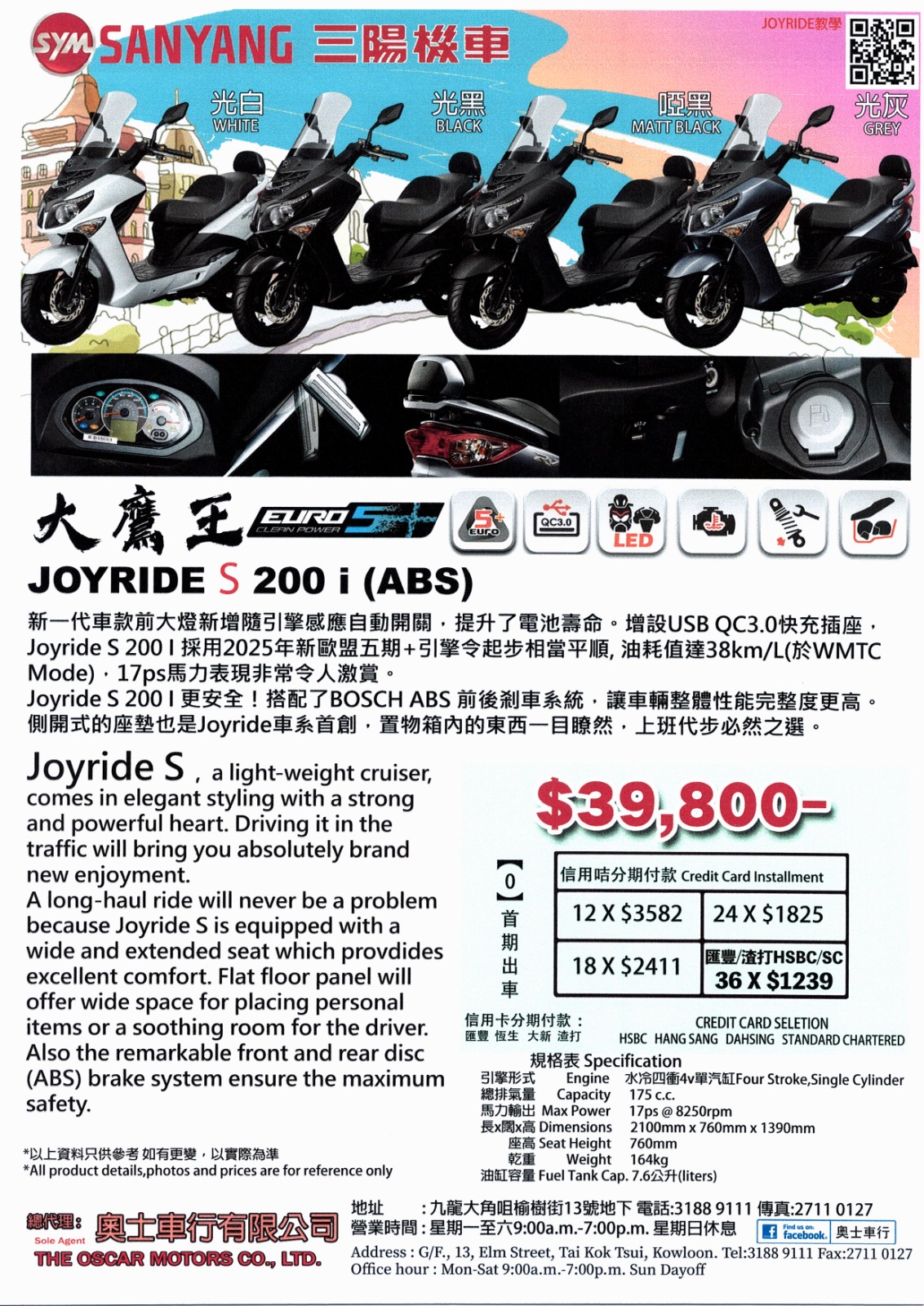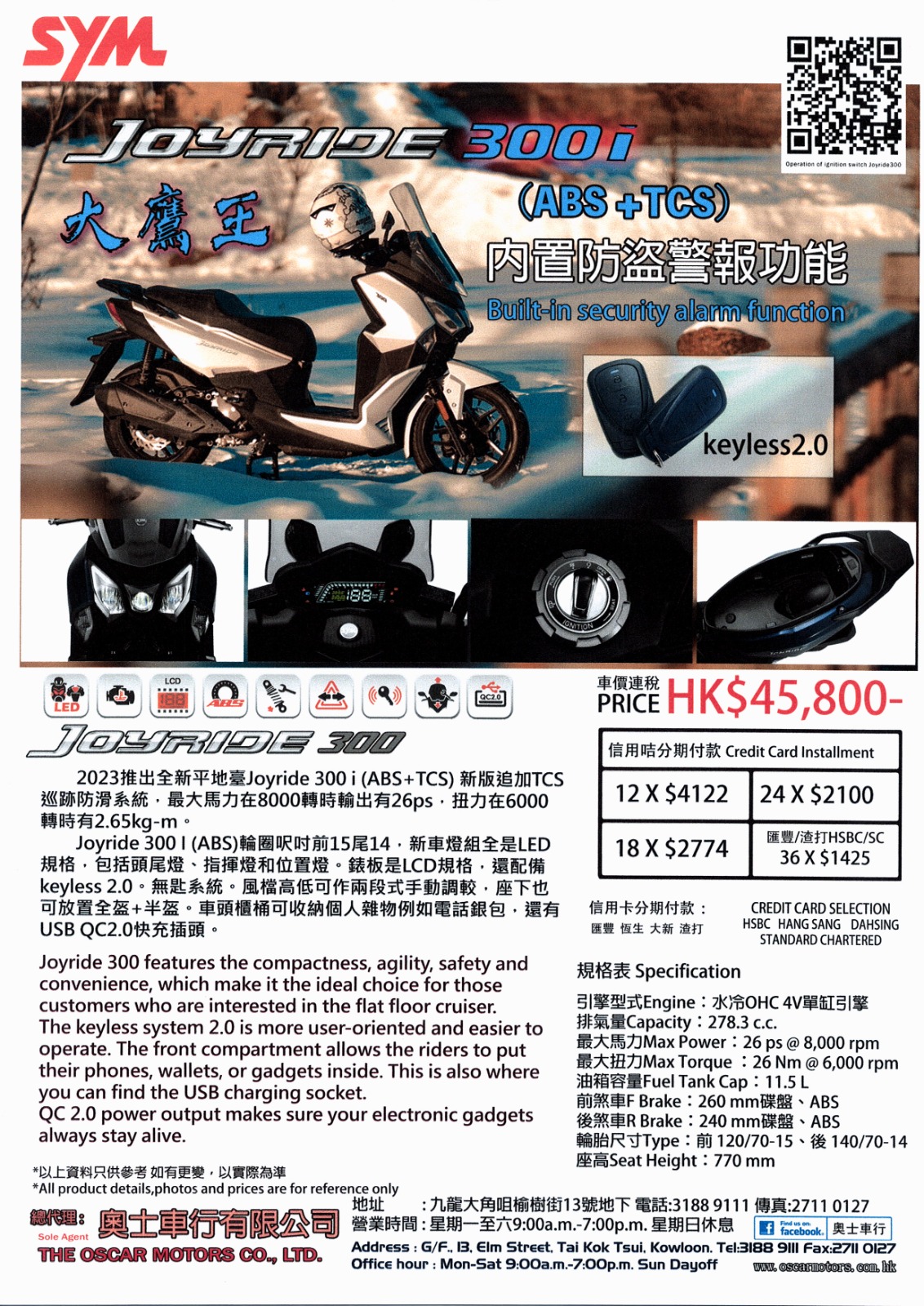 全新平地臺 Joyride 300i(ABS+TCS) 新版追加TCS巡跡防滑系統.