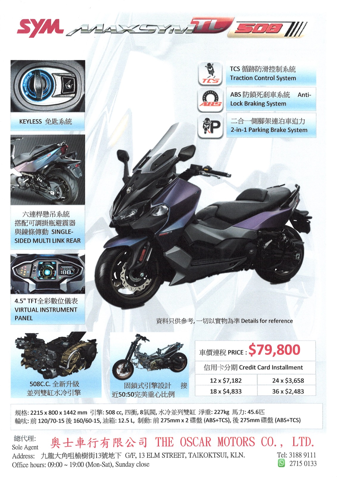 508C.C. 全新升級 並列雙缸水冷引擎接近50:50完美重心比例